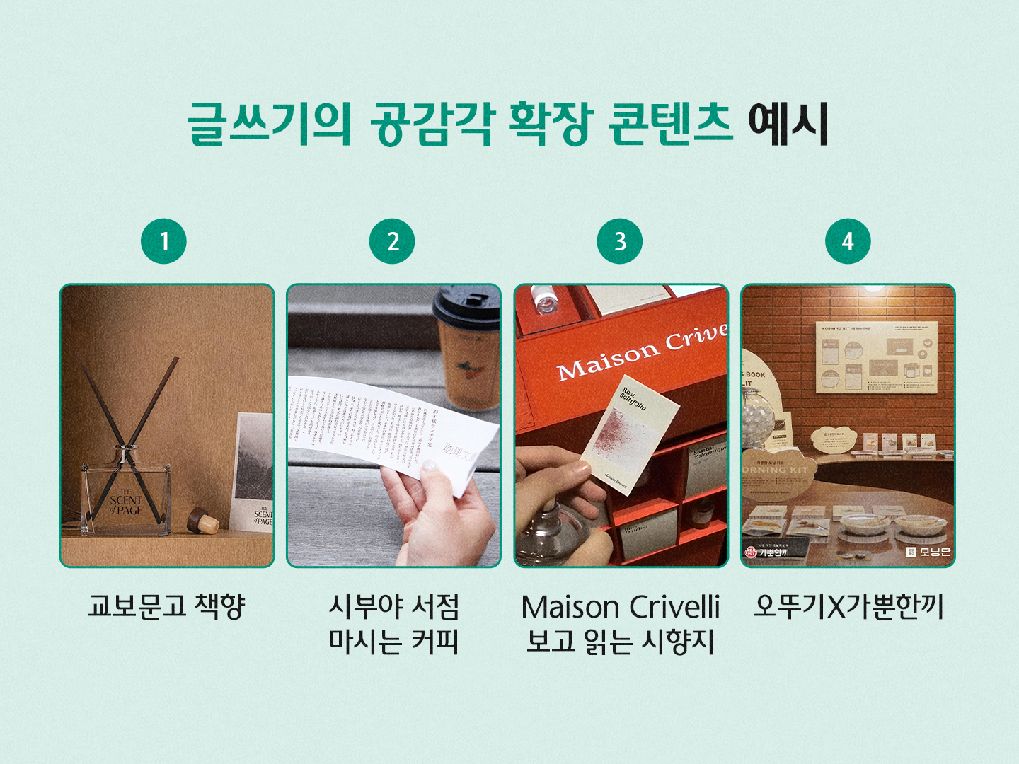 쓰기는 이제 텍스트에 머무르지 않고, 후각과 청각, 공간이 결합된 다중 감각적 경험으로 재설계되며 브랜드 경험의 중요한 매개가 되고 있습니다.