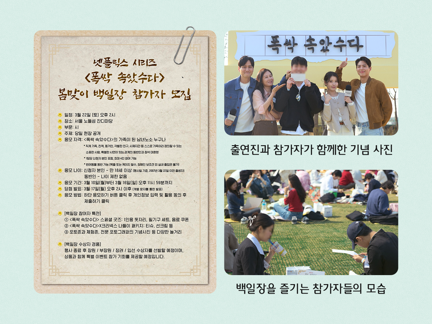 넷플릭스는 제주를 배경으로 한 드라마 ‘폭싹 속았수다’의 오프라인 홍보 이벤트로 진짜 ‘백일장’을 열었습니다. 참가자들은 사계를 주제로 각자의 인생 이야기를 손 글씨로 적어내고, 장원·부장원·장려상을 수상하며 하나의 문화 체험을 완성했습니다. 이 감성 프로모션은 그 자체로도 감각적이었지만, 주목할 지점은 따로 있었습니다. 바로 영상 플랫폼인 넷플릭스 조차 ‘쓰기’를 감각적 경험으로 풀어내고 있다는 점입니다.
