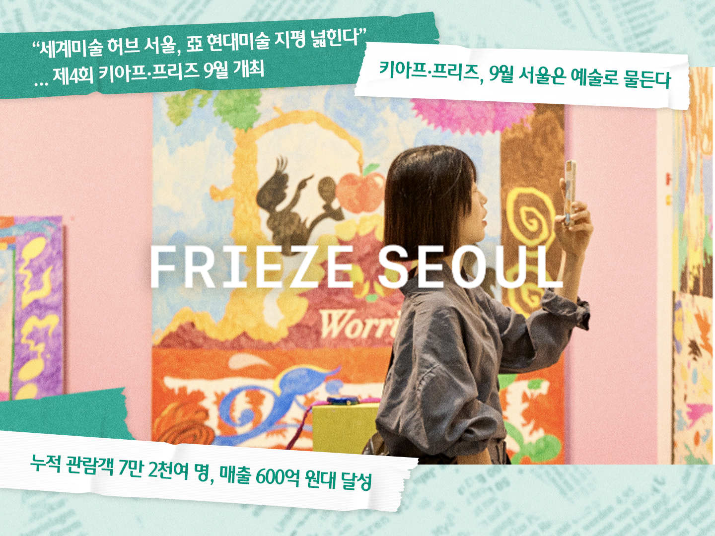 600억 원대 매출. 누적 관람객 7만 2천여 명. 작년 9월 열린 아시아 최대 아트페어, 프리즈 서울(FRIEZE SEOUL)이 기록한 실적이에요. 미국 뉴욕현대미술관(MoMA), 영국 테이트 모던(Tate Modern) 등 세계적인 미술관 관장들도 한국을 찾았죠. 올해 9월 3일부터 6일까지 열릴 프리즈 서울 2025는 아시아 주요 갤러리들이 추가로 합류해, 더욱 풍부한 콘텐츠를 선보일 예정입니다. 그렇다면 프리즈는 정확히 무엇이고, 왜 홍콩이나 싱가포르 같은 기존 미술 강국이 아닌 한국에 주목한 걸까요? 프리즈 서울만의 매력은 어떤 게 있을까요?👀